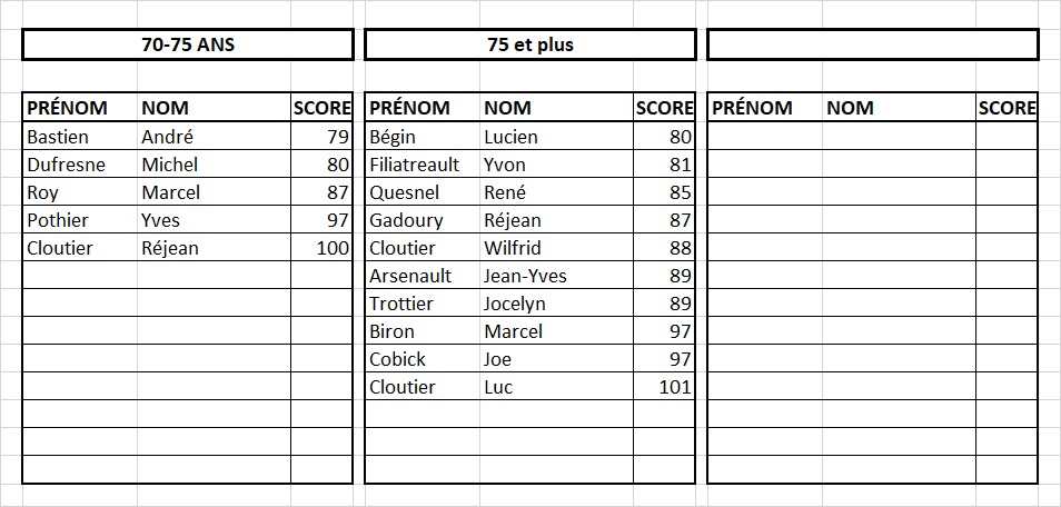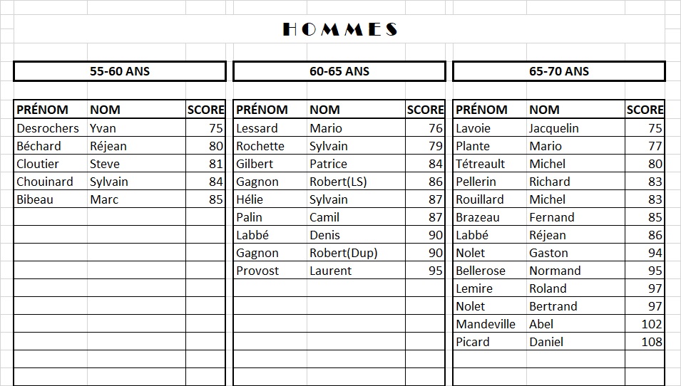 RÉSULTATS HOMMES: